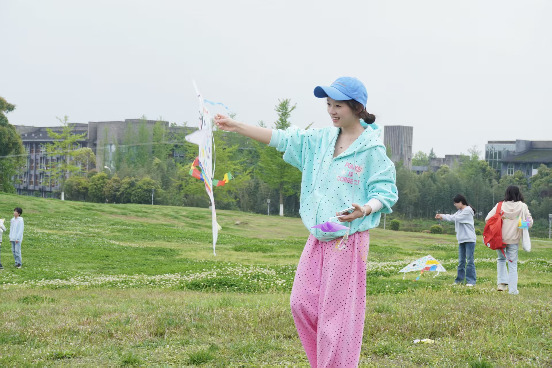 手绘环节结束后,风筝放飞环节正式拉开序幕。和煦春风拂过情人坡,湛蓝的天空化作天然画布。同学们手持风筝线,时而奋力奔跑、顺势放线,时而轻拉调整、掌控方向,清脆的欢呼声、爽朗的笑声此起彼伏。一只只色彩斑斓的风筝挣脱束缚、越飞越高,在白云间自在摇曳,仿佛承载着少年们的青春梦想,为春日校园增添了一抹灵动的亮色,绘就出一幅生机勃勃的春日图景。